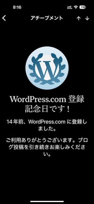 と・・・ところで、全く関係ないがWordPress.comからこんなのがきた(笑