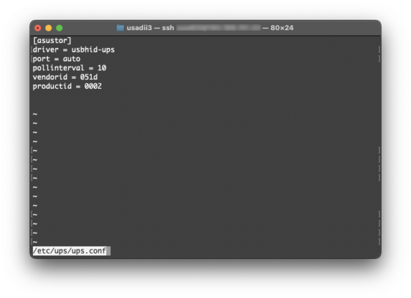 まず、ASUSTOR AS3304T v2がどういう仕組でやってるんだろう?ということから調べんといかんのだけど、色々ググっていくとどうもNUTみたいだということまでは分かった。ので、SSHでアクセスして構造を確認。