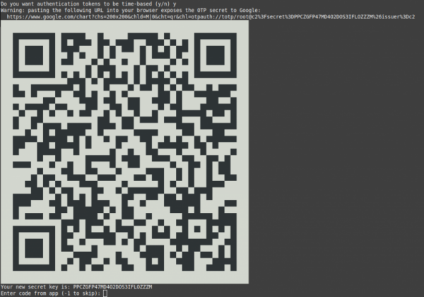 QRコードを読み込んだ後6桁のコードを入力し、いくつか質問が出てくるので全てに「y」と答えて準備完了。