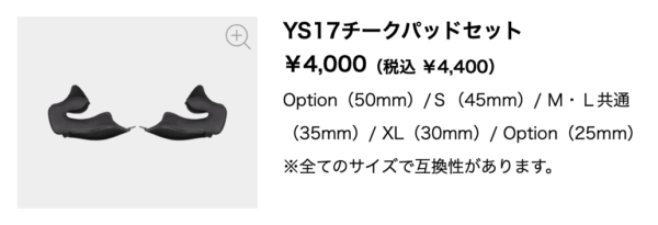 大体片側8mm(指一本分)ぐらい薄くなってました。てことは両側だと1.6cmだから結構だよねぇ。こんな感じで全体に薄くなっているのだよねぇ。それで風を巻き込むようになってしまった、と。システムヘルメットで且つインカムつけているので尚更ヘタリが気になるのだろうねぇ。そうか、1年で交換か(苦笑)。YS17チークパッドセット、価格改訂があり、ちょい価格が上がって実売4000円ぐらい。