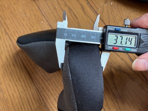 比べると目視でも薄くなっているのがわかるぐらいだが、前方部分の厚みをノギスで測ってみると