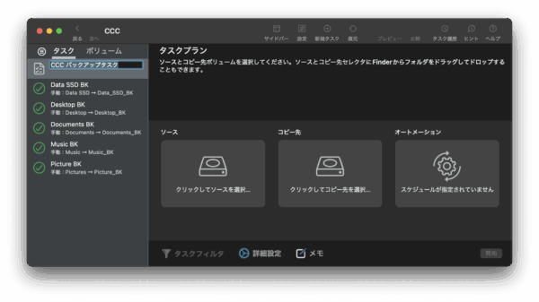 と、こんな感じ。欲しいのはWindowsでいうところのBunBuckupみたいなシンプルで痒いところに手が届き動作が軽いもの、そんなんでいいんだけど、これがなかなかなくて、唯一一番近かったのがSync! Sync! Sync! 3だ。しかしなぁ、何年も更新が止まったままのものをこれ以上使い続けるのもなぁ、とさらに探してみたら、なんのことはない、結局CCCの新しいのがよさげじゃね?と。