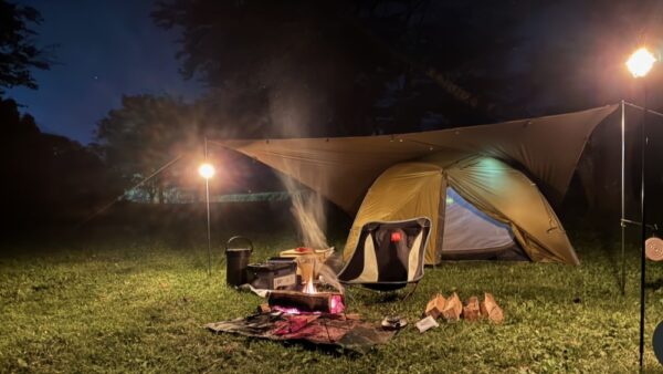 テントで寝るわけじゃないので、インナーテントもコットも要らない。暖がとれてお湯沸かせてイスとテーブルとランタンだけあればいい。うん(^^
