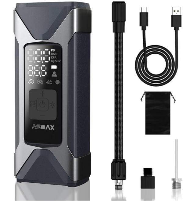 これ、思ってた以上に便利。今回今年初で走り始める前に使ったんだけれど、基本的にやることは付属のホースでASMAX T10をタイヤに取り付けて電源を入れるだけ。前回設定した値が記憶されているので、あとはそのままONにすれば設定した空気圧まで自動で入れてくれる。これを前後でやるだけなので、超簡単。ホースをつなげて電源を入れただけで、現在の空気圧が表示されるのも良い。